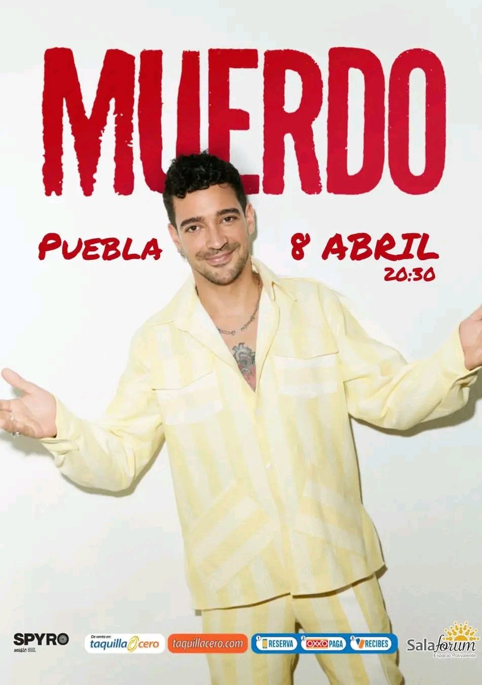 #R3venta2 El cantante Muerdo se presentará este 8 de abril en Sala Forum, en punto de las 20:30 horas, como parte de su gira, en la que promete conquistar al público poblano con un espectáculo lleno de energía, ritmo y conexión emocional.